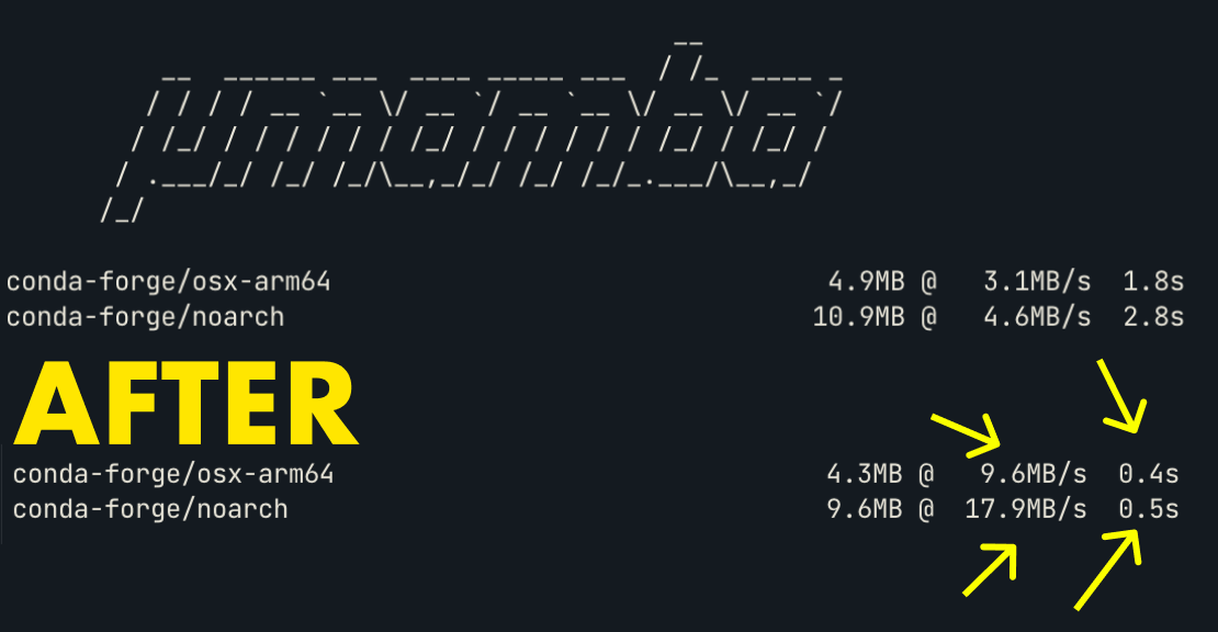 now supports a experimental zst encoded repodata files for much faster download speeds from Anaconda servers. This is especially relevant for users with high internet speeds. Previously the download speeds were limited to ~3 MB/s for the standard repodata.json files which were on-the-fly compressed with gzip