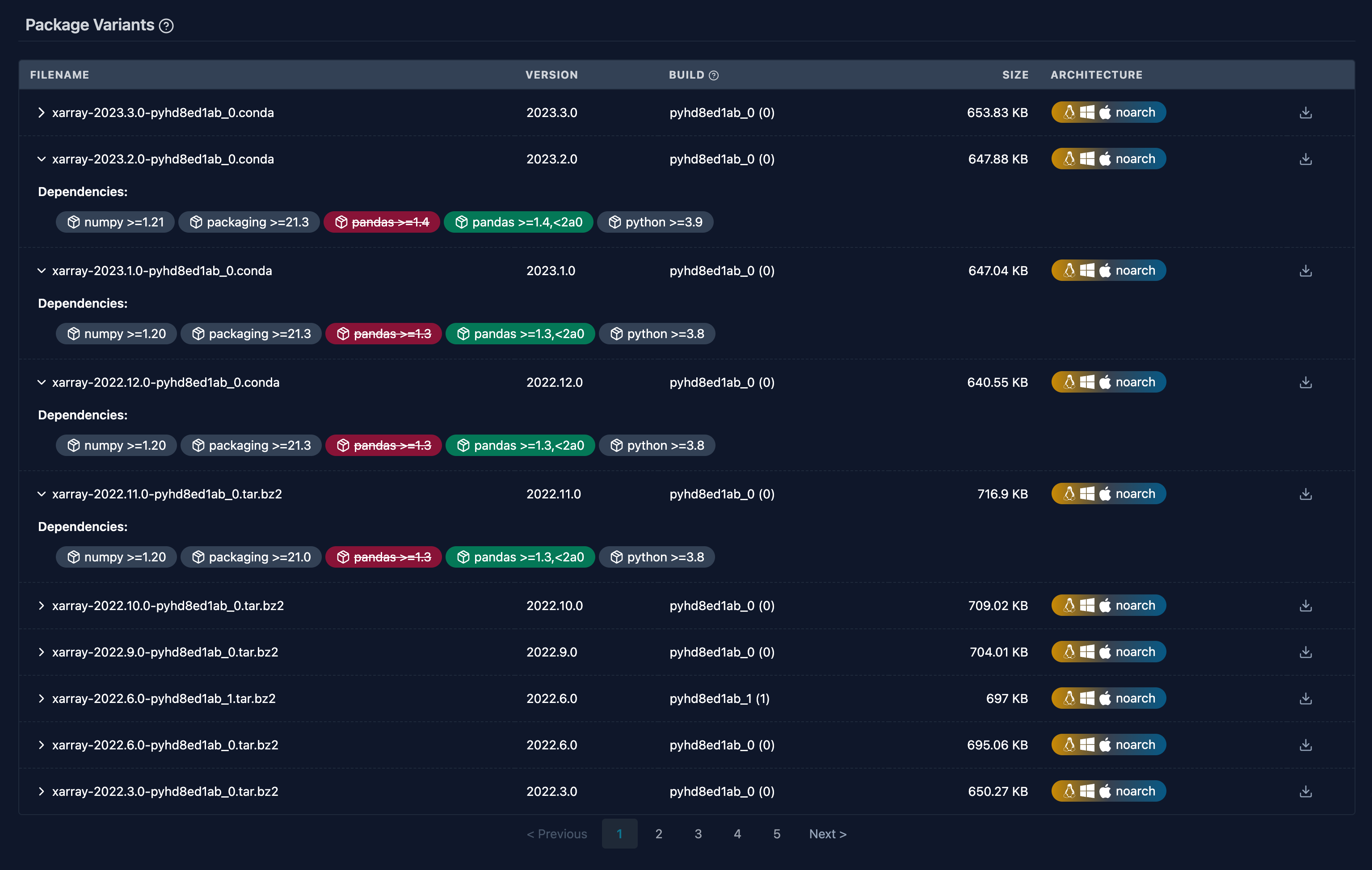 If you notice an inconsistency in the repodata (e.g. some package is not compatible with the newly released pandas 2.0) then repodata patching comes to the rescue! conda-forge has a fully automated special repository for this.