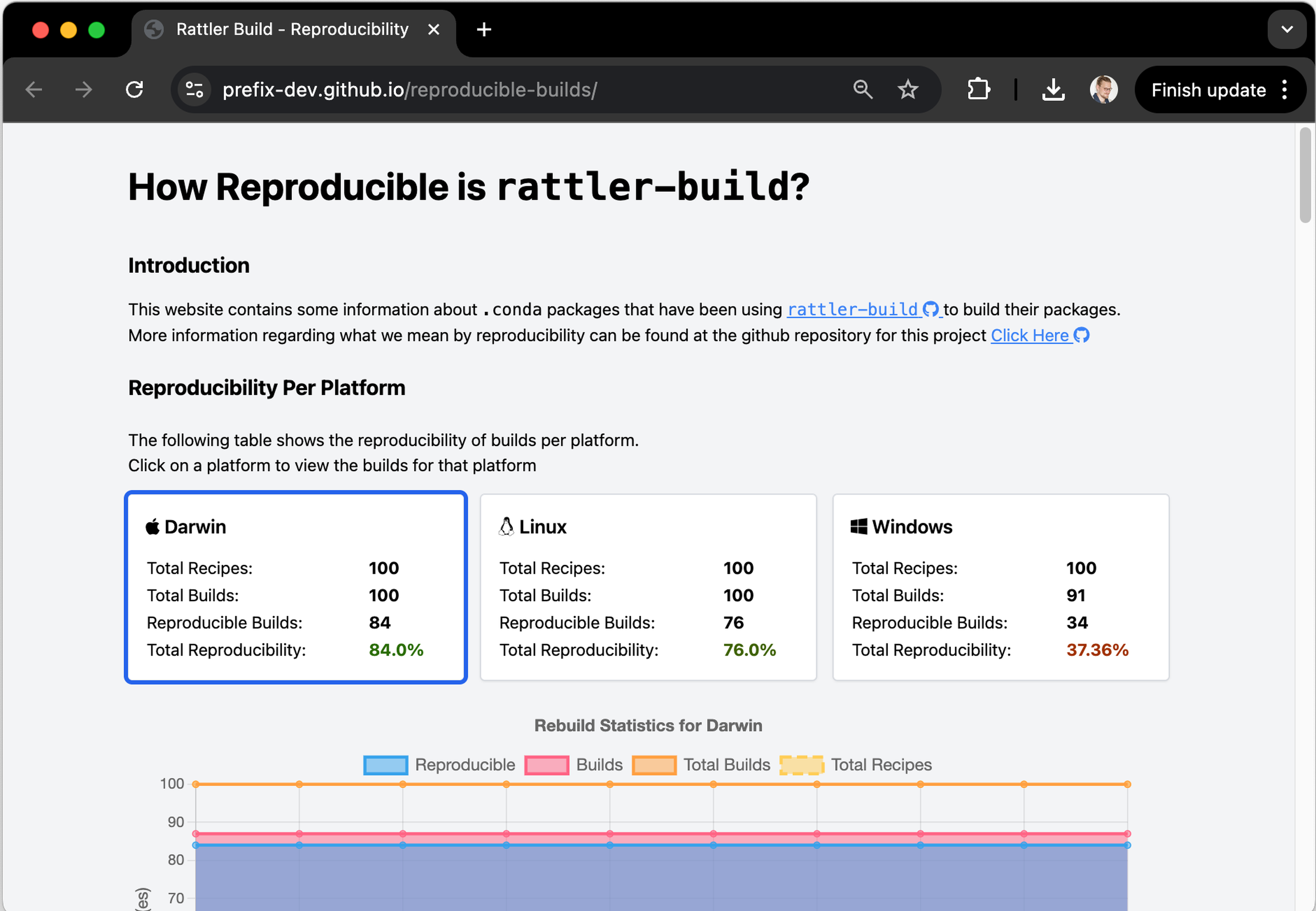 We designed rattler-build to allow for perfect reproducibility – for nerds who want extra security. We set the $SOURCE_DATE_EPOCH