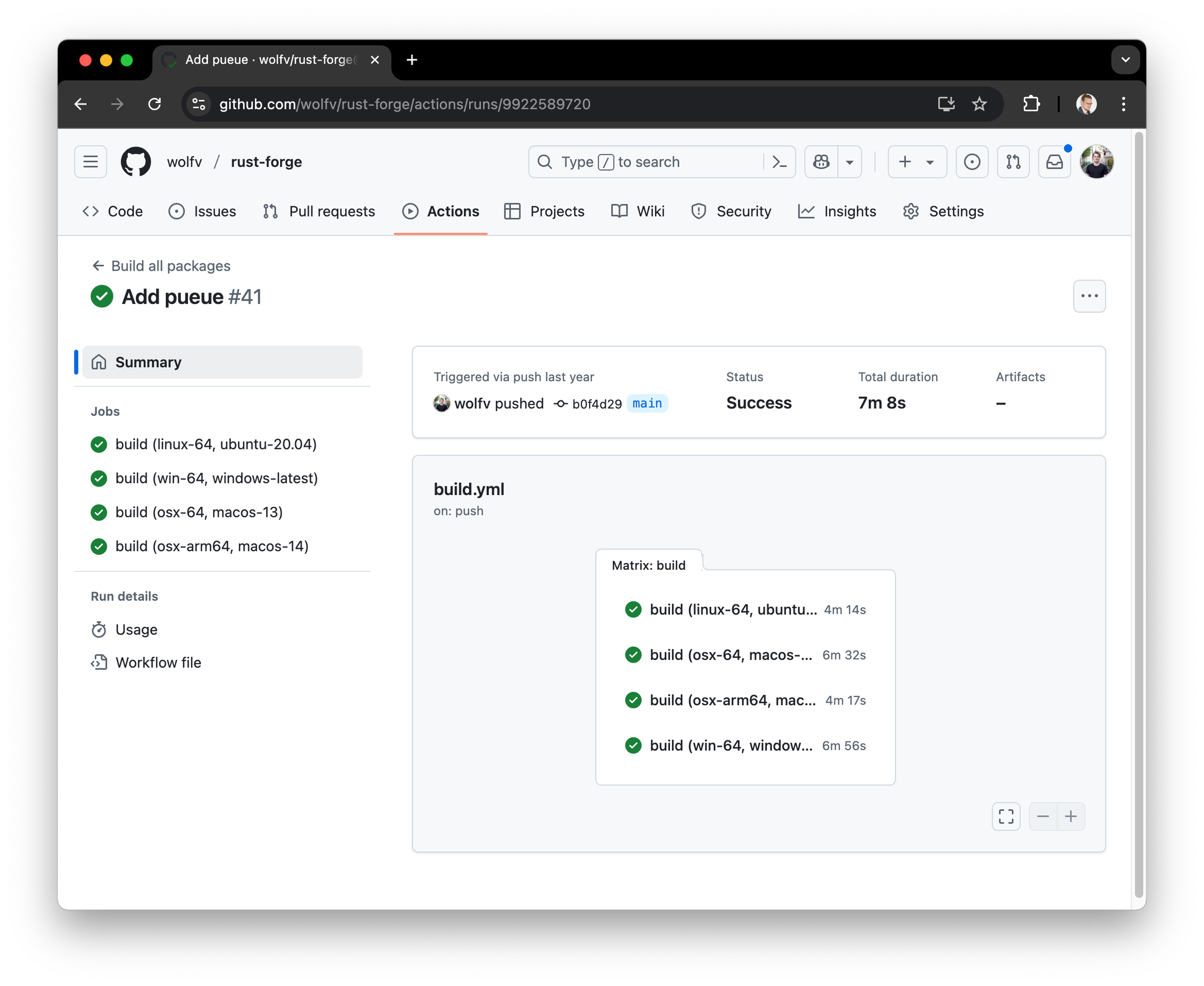 rattler-build natively integrates with Github Actions and produces summary files. We make it easy to run entire package distributions from a single, short Github workflow – the heavy lifting is done by rattler-build.